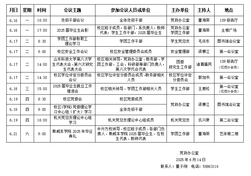 濟(jì)南校區(qū)第十七周會(huì)議安排