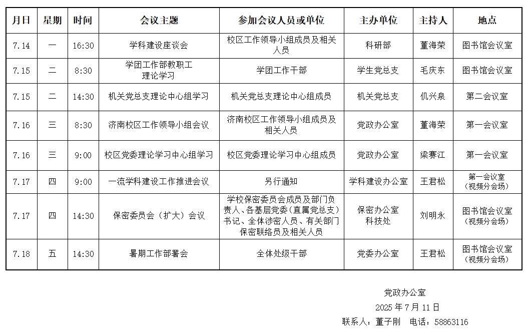 濟(jì)南校區(qū)第二十一周會(huì)議安排