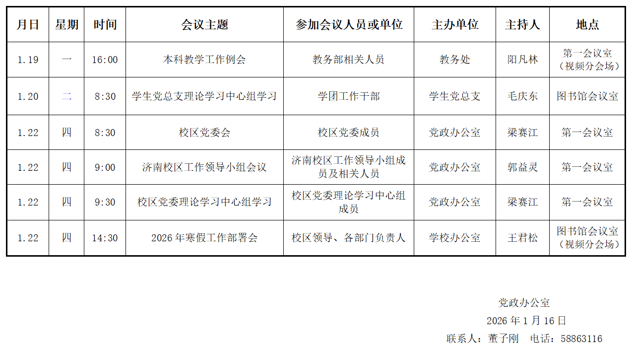 濟(jì)南校區(qū)第二十一周會(huì)議安排