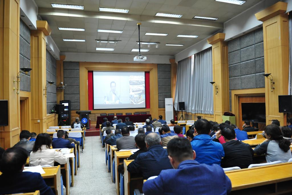 10月22日,濟(jì)南校區(qū)組織科級(jí)以上干部、黨支部書(shū)記在109報(bào)告廳參加學(xué)?!安煌跣?、牢記使命”主題教育專題黨課視頻會(huì)議。