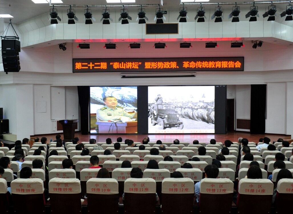 10月12日,濟南校區(qū)組織科級以上干部、黨支部書記、學(xué)生工作干部、全體思政課教師和師生代表等在圖書館報告廳參加學(xué)?!疤┥街v壇”第二十二期報告會,聆聽了國防大學(xué)原戰(zhàn)役教研部軍訓(xùn)教研室主任、軍事學(xué)博士、山東科技大學(xué)客座教授房兵作的題為“新中國歷史上的大閱兵”專題報告。