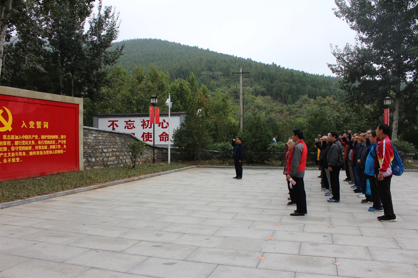 隨后,全體黨員在初心廣場(chǎng)面對(duì)黨旗,重溫入黨誓詞。