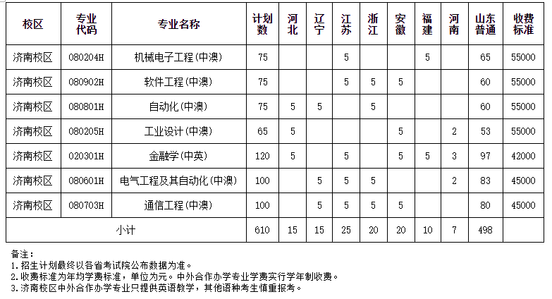 山東科技大學中外合作辦學2025年分省本科招生計劃