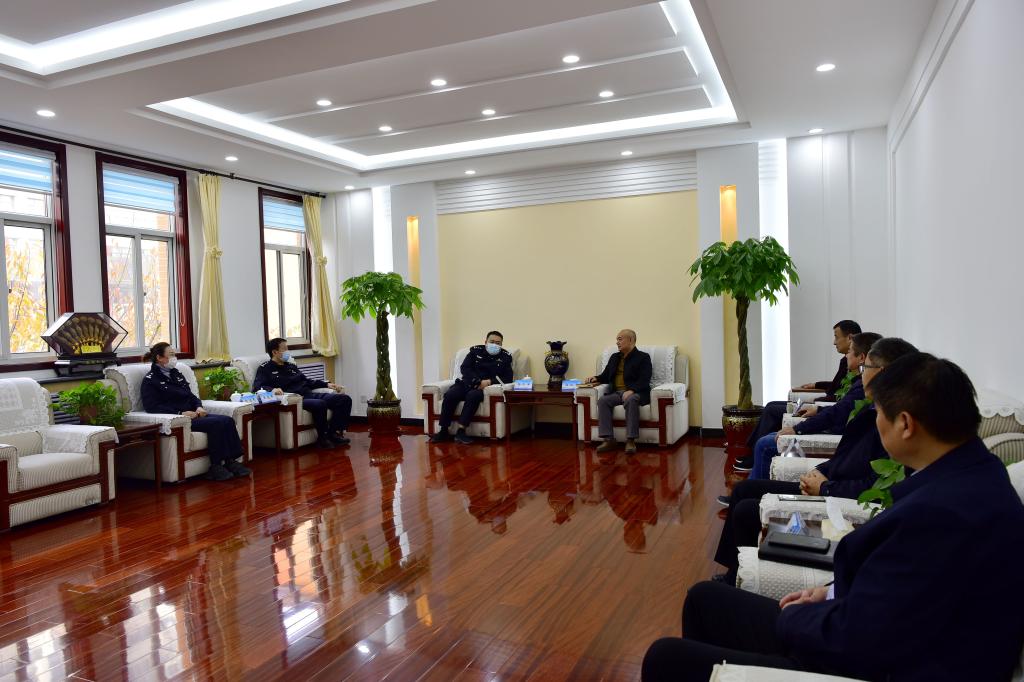 郭加書對楊令宇一行表示熱烈歡迎,對天橋警方長期以來給予校區(qū)安全穩(wěn)定工作的大力支持和幫助表示感謝,介紹了學(xué)校的發(fā)展歷史與現(xiàn)狀、濟(jì)南校區(qū)的功能定位與辦學(xué)特色、校區(qū)學(xué)生安全教育管理的做法和成效,希望警校加強(qiáng)溝通交流,進(jìn)一步建立健全聯(lián)防聯(lián)動機(jī)制,共同維護(hù)師生的健康平安和校園的安全穩(wěn)定,助力“平安濟(jì)南” “平安天橋”建設(shè)。楊令宇對學(xué)校及校區(qū)的發(fā)展成就表示贊賞,交流了“平安濟(jì)南” “平安天橋”建設(shè)情況,通報(bào)了駐濟(jì)學(xué)校特別是高校學(xué)生安全形勢與狀況,表示要加強(qiáng)與校區(qū)的交流溝通,更好地為學(xué)校的發(fā)展與人才培養(yǎng)提供安全環(huán)境保障。