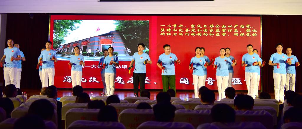 宣講活動中,優(yōu)秀輔導(dǎo)員代表們通過真理的味道、偉大的旗幟、春天的故事、奮進新時代四個篇章傾情演繹了黨的百年輝煌歷程。《尋路》以李大釗用生命傾注于“青春中國”的革命偉業(yè)、《斷腸明志》以陳樹湘為革命斷腸取義的烈士事跡,生動展示了中國共產(chǎn)黨從無到有的艱辛歷程和革命英雄們堅如磐石的信念。舞臺劇《陳望道首譯宣言》鮮活展現(xiàn)了以墨為糖首譯《共產(chǎn)黨宣言》的陳望道堅守信念、追求真理的偉大精神。歌劇渣滓洞女監(jiān)《繡紅旗》、冰雪長津湖“冰雕連”以及“兩彈一星”功勛科學(xué)家郭永懷心有大我、以身許國的英雄故事,生動展現(xiàn)了為了民族獨立、人民解放和國家富強,革命烈士們大無畏的犧牲精神和不朽功勛。相聲《穿越》和快板《“改”出來的美好》,真摯講述了改革開放43年的光輝歷程和偉大成就?!段液臀业拇髮W(xué)》深情講述了建校70年以來一代又一代科大人勠力同心、砥礪奮進的勵志故事。歌曲《想把我唱給你聽》《青春》《少年》展現(xiàn)了輔導(dǎo)員老師們赤誠的育人情懷和青年學(xué)生蓬勃向上的奮發(fā)力量。宣講過程中,一個個頑強拼搏、不懈奮斗、忘我奉獻的初心故事透射出的堅韌不拔的意志品質(zhì)和深厚的愛國情懷,深深觸動了在場的每一位師生,許多師生熱淚盈眶。