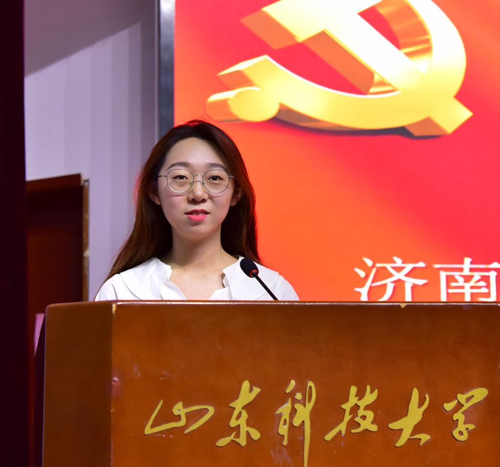 畢業(yè)生黨員代表郝一璨發(fā)言,代表全體畢業(yè)生黨員衷心感謝黨組織的悉心培養(yǎng)和教育,感恩學(xué)校領(lǐng)導(dǎo)老師的辛勤付出和培育,表示將牢記母校囑托,感恩明理、務(wù)實篤行、接續(xù)奮斗,在奮斗中彰顯青春價值,在奉獻中展現(xiàn)時代擔(dān)當(dāng),用實際行動踐行科大精神,向中國共產(chǎn)黨建黨100周年獻禮。