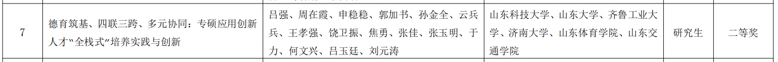 近日,山東省教育廳正式公布第十屆高等教育省級教學(xué)成果獎獲獎名單。校區(qū)呂強(qiáng)教授團(tuán)隊的《德育筑基、四聯(lián)三跨、多元協(xié)同:專碩應(yīng)用創(chuàng)新人才“全棧式”培養(yǎng)實踐與創(chuàng)新》榮獲省級教學(xué)成果獎(研究生)二等獎。